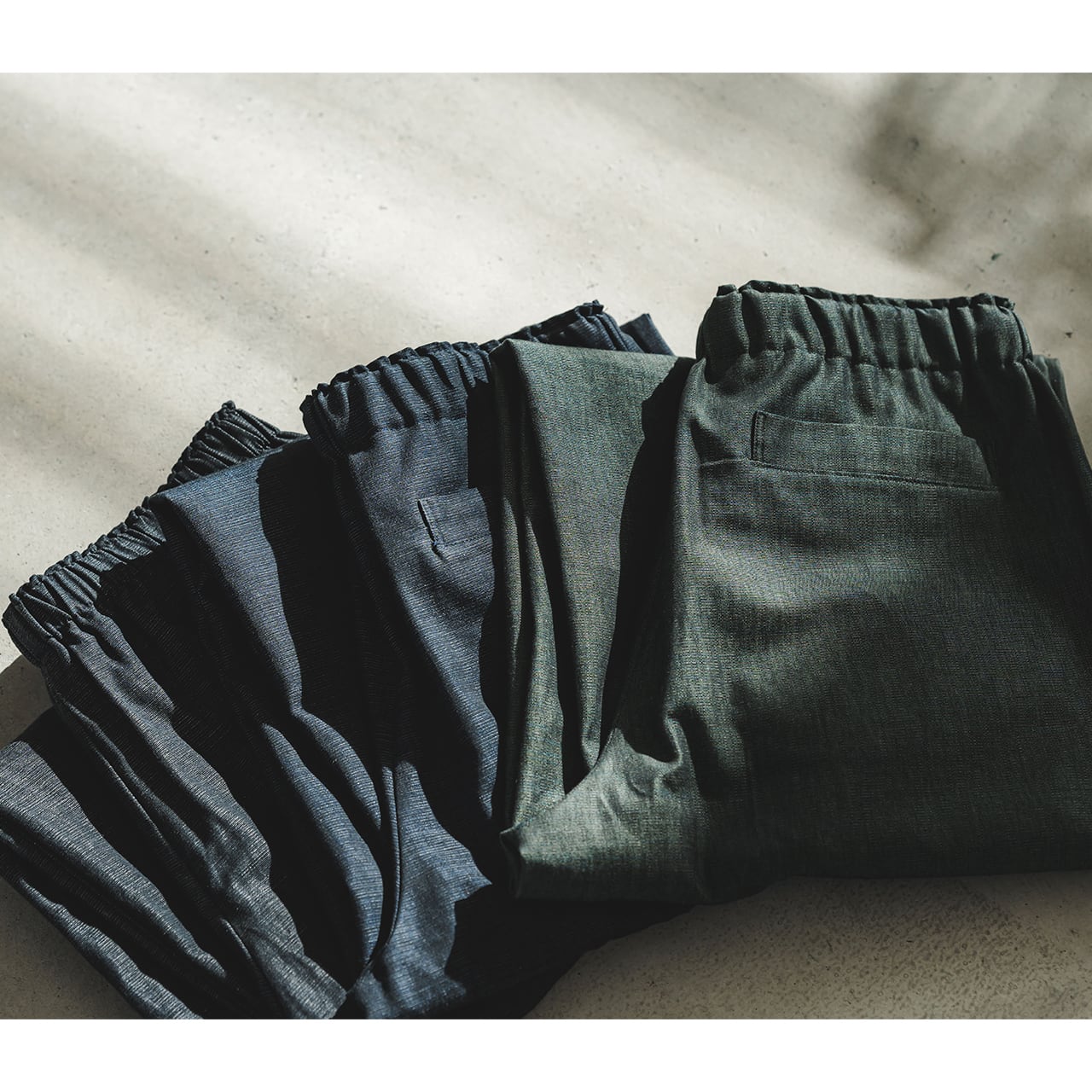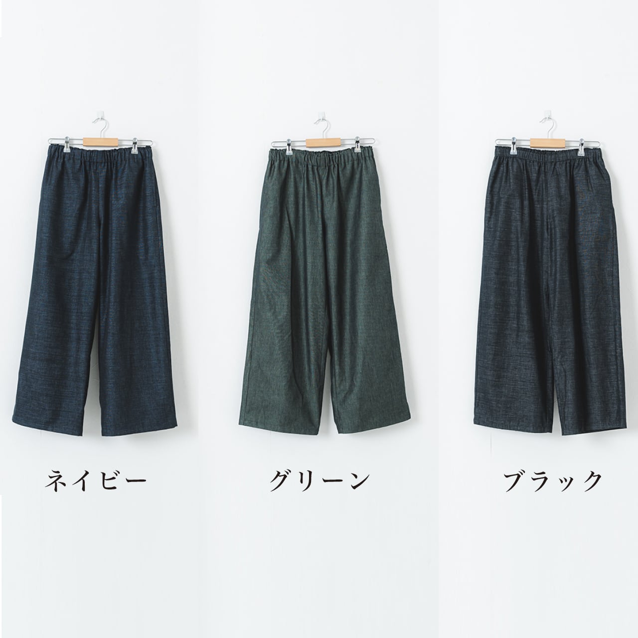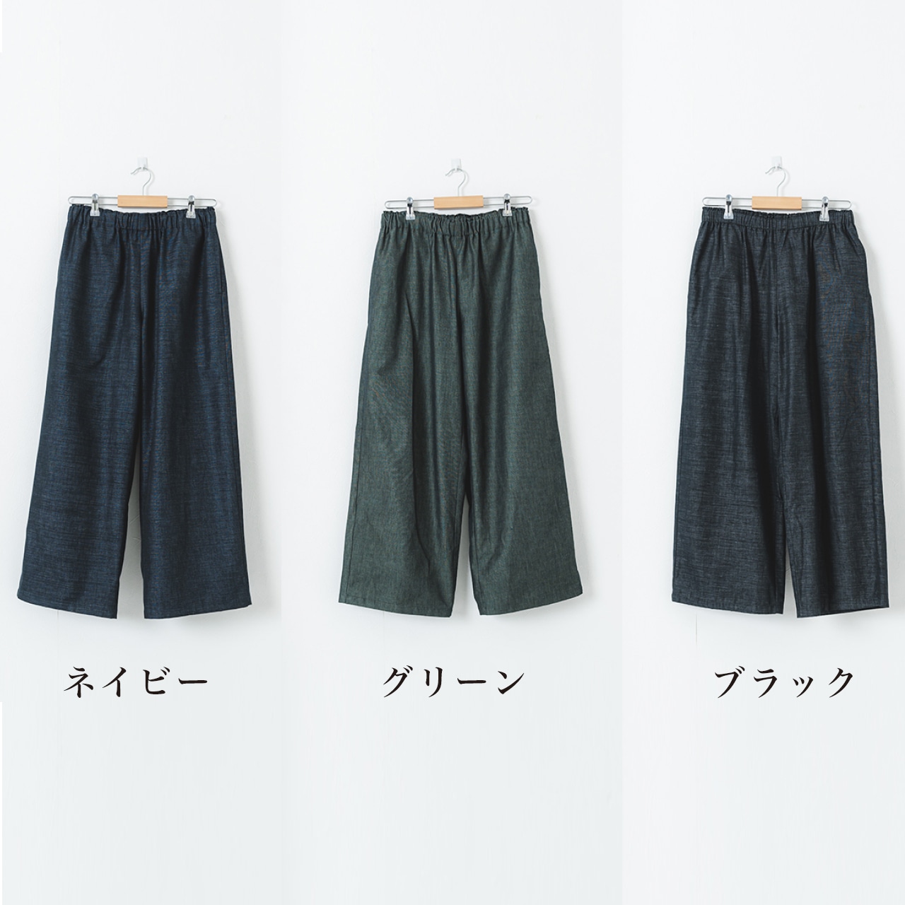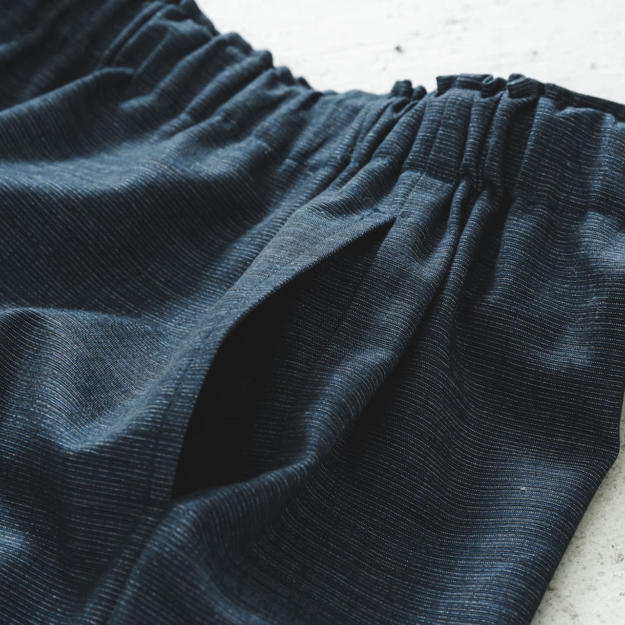 愛知・三河の伝統織物、三河木綿 ワイドパンツ