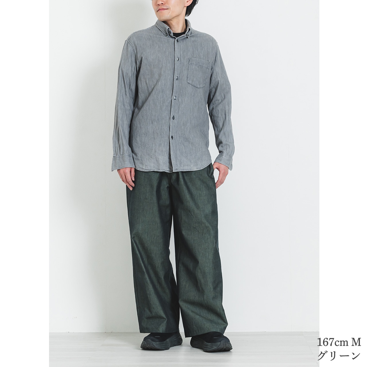 愛知県三河地方の伝統織物、三河木綿を使用したワイドパンツです。