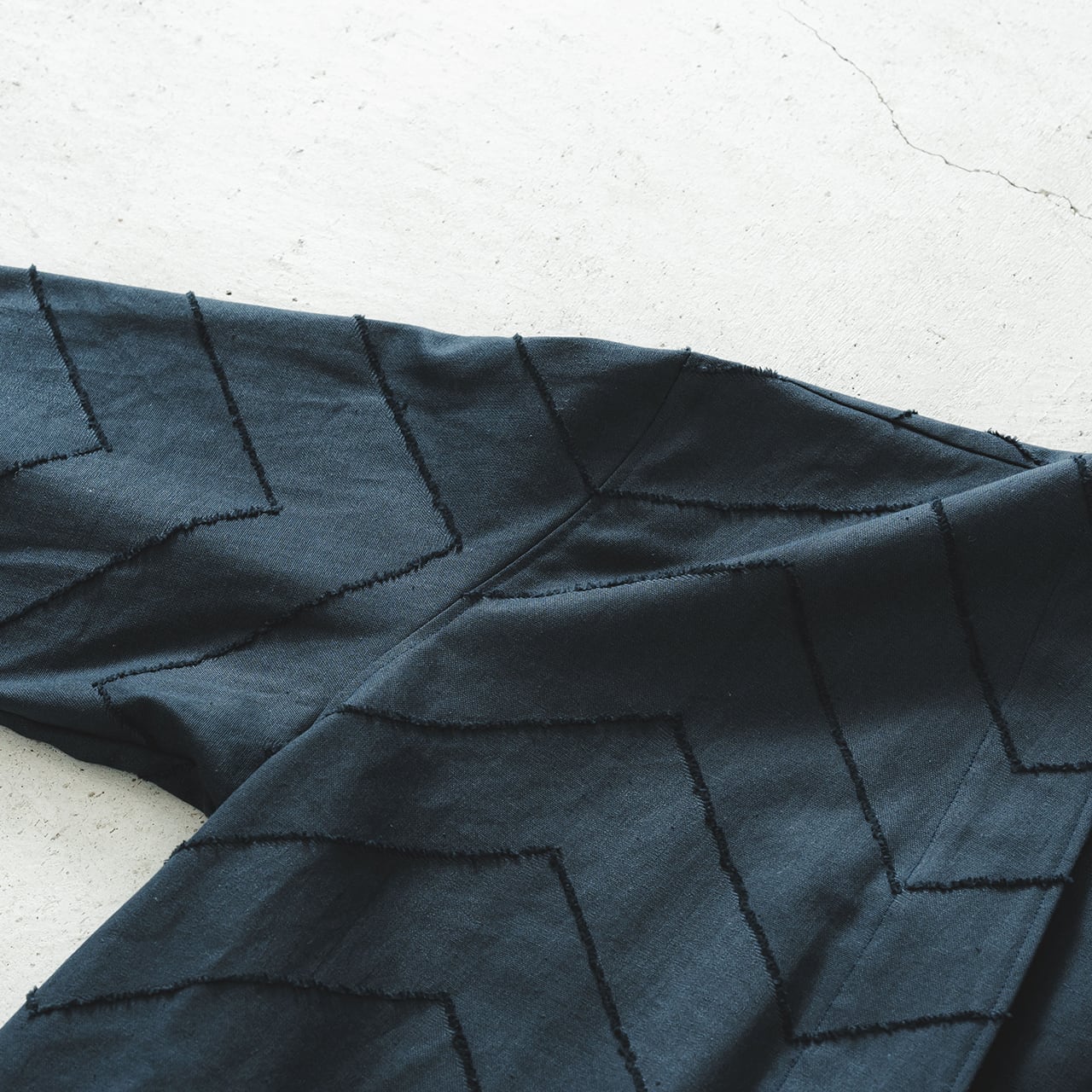 織り方で生地の模様を表現し、光にかざすことで矢絣のような紋様が浮かび上がる「光と風をまとう」羽織りが完成しました。