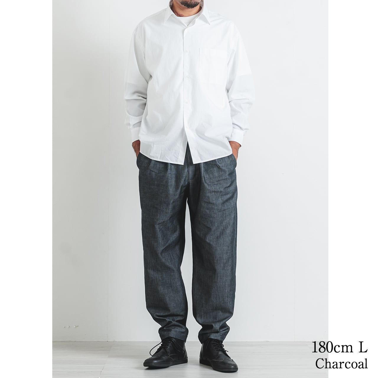 ・「チャコールグレー」少し光沢感のある色味。カジュアルにもビジネスにも
