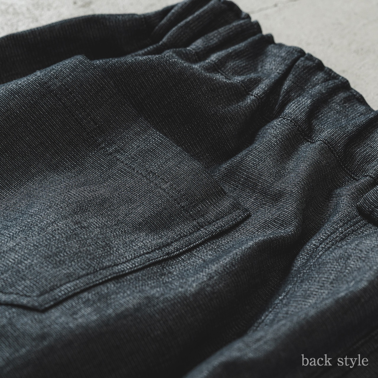 後ろはゴム仕様になっており、どのような体型の方にも履いていただけるよう製作。