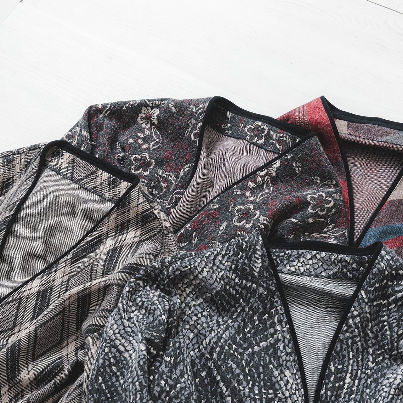 落ち着いたトーンなので男性でも羽織りやすい。なかなか見ない柄で職人のオリジナリティを感じる、お洒落なパターンが好みの方に。