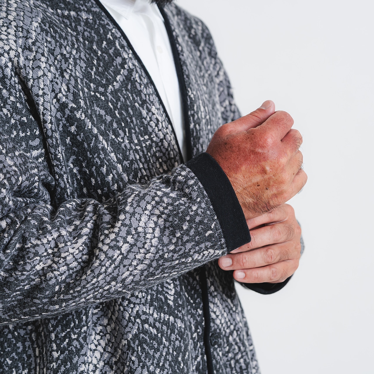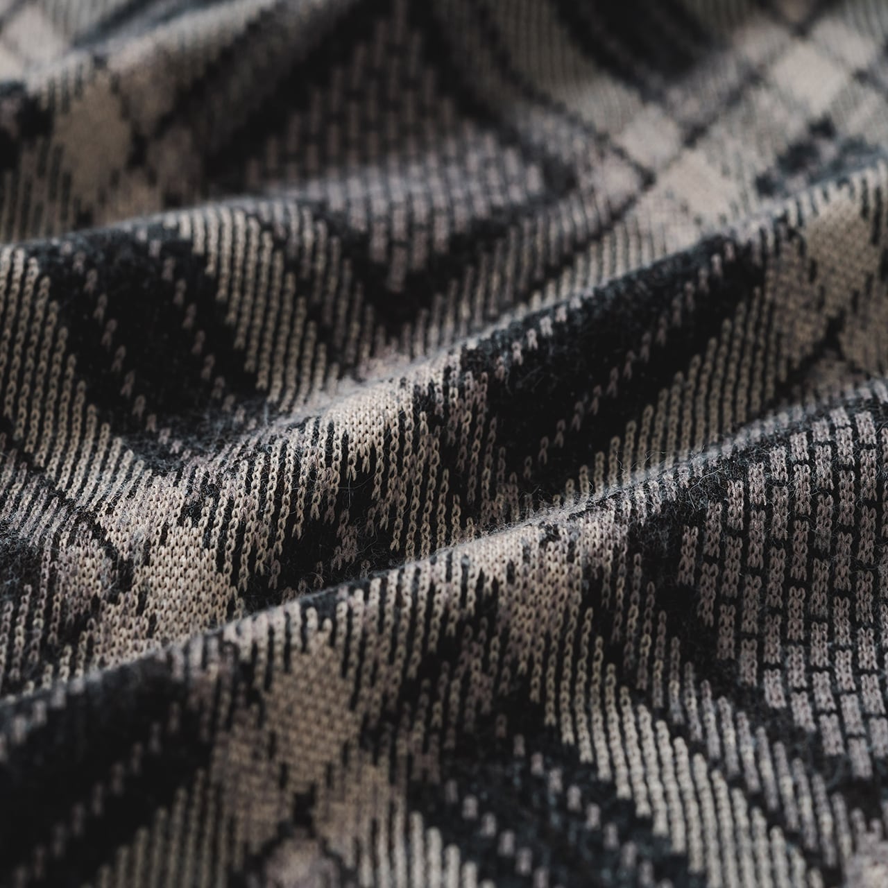 シンプルで洗練されたデザインの生地は、尾州の職人が手書きで描き起こしたデザインで30年以上現役で編まれていることからも、流行に左右されない普遍的な良さを感じられます。